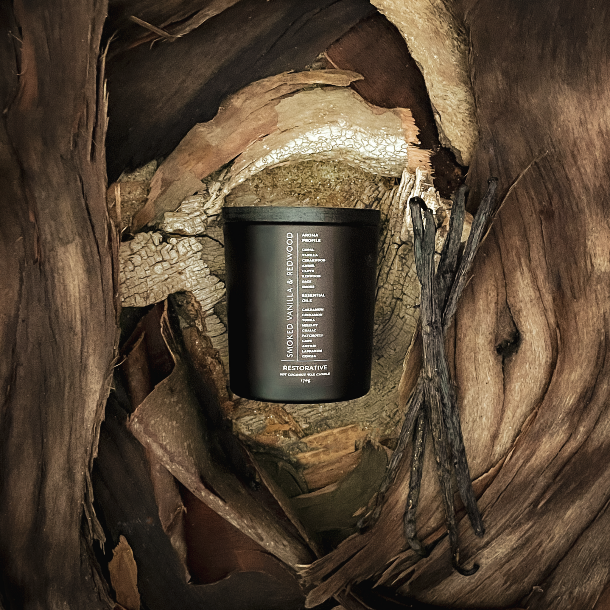Our candles burn clean, are vegan, cruelty-free, and phthalate-free. Breathe deep into the sacred hush of our Smoked Vanilla & Redwood scent, where the wild heart of forest embeds itself in your space.
