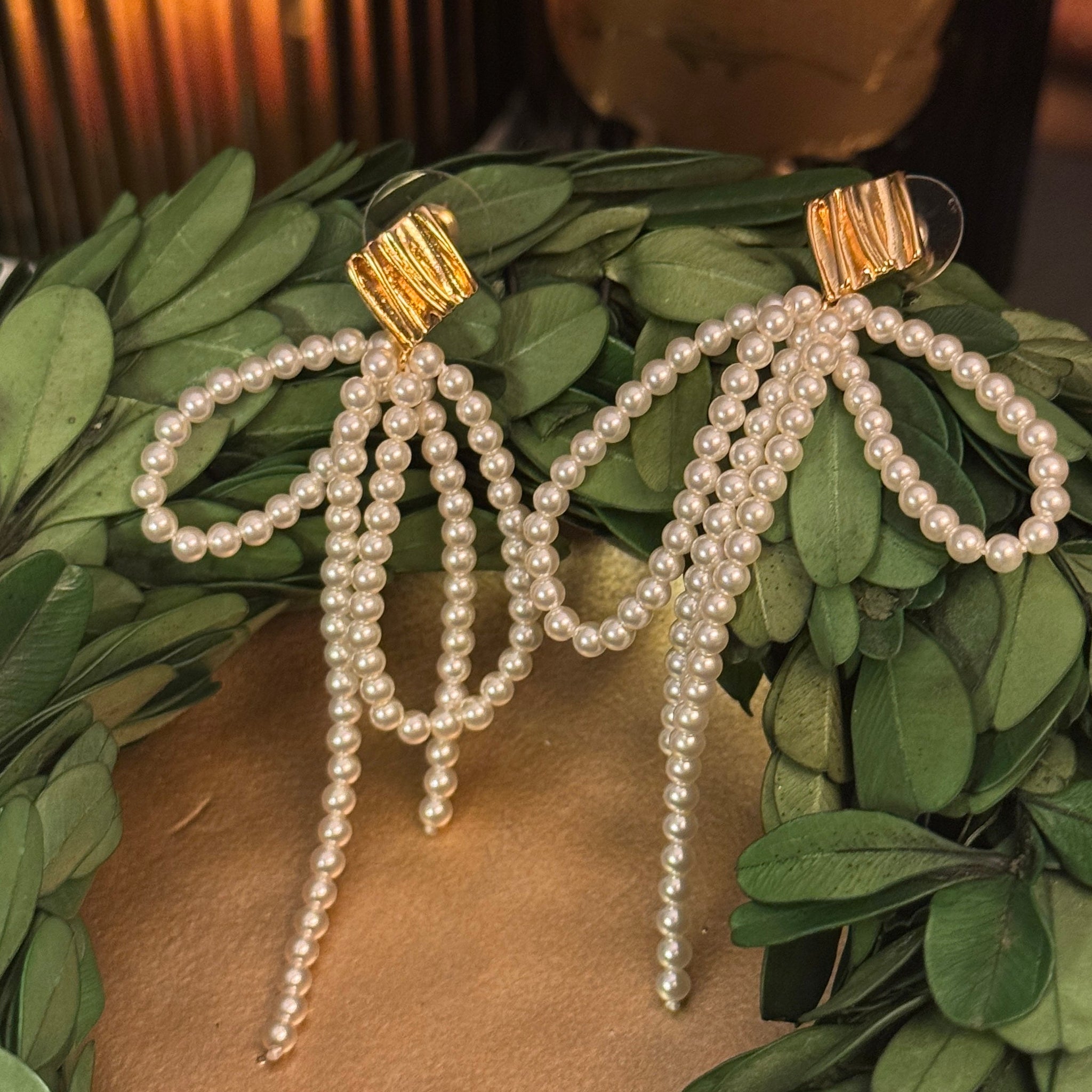 Brass with 18KT plated gold, sliver ear back, faux pearls