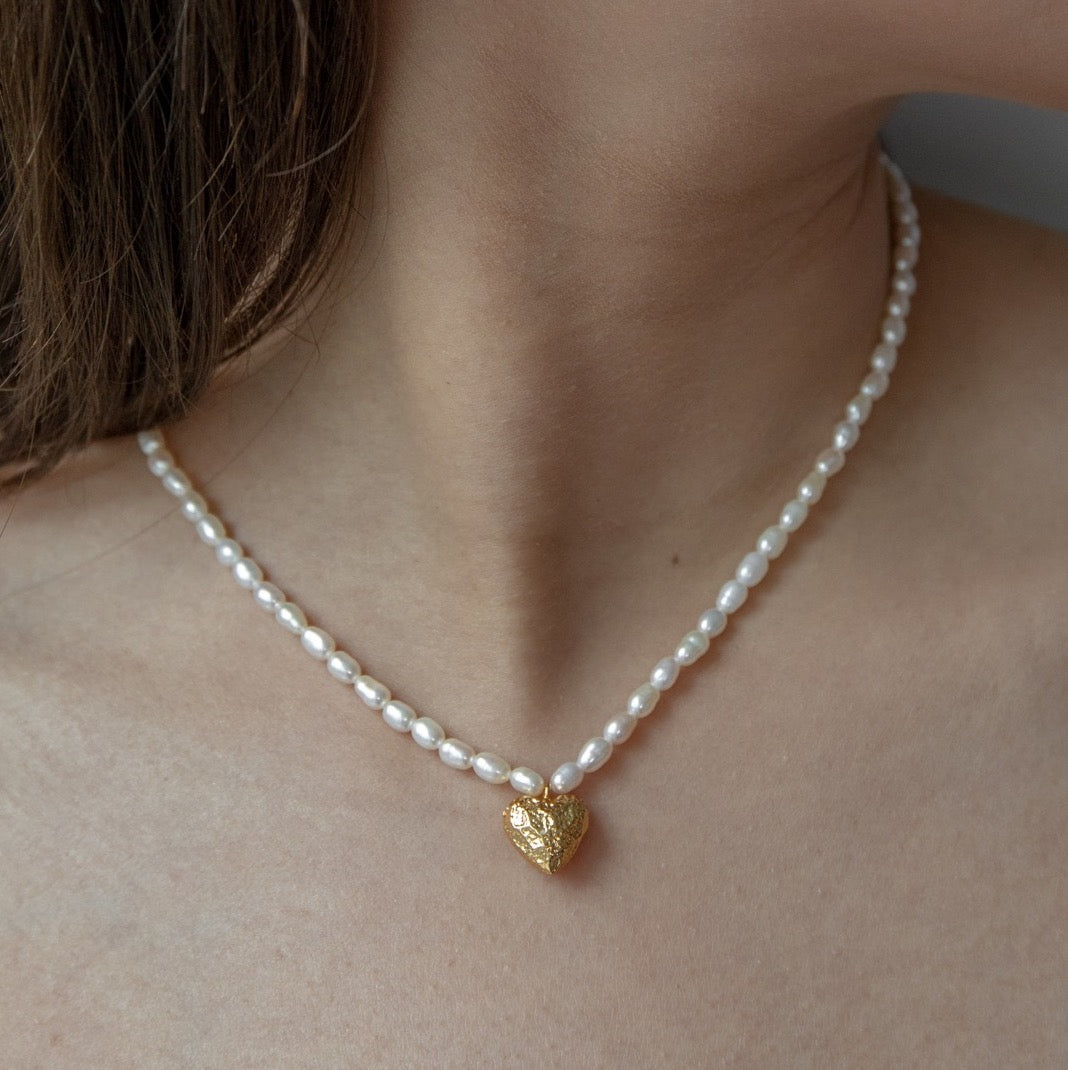 Golden Heart Pearl Necklace