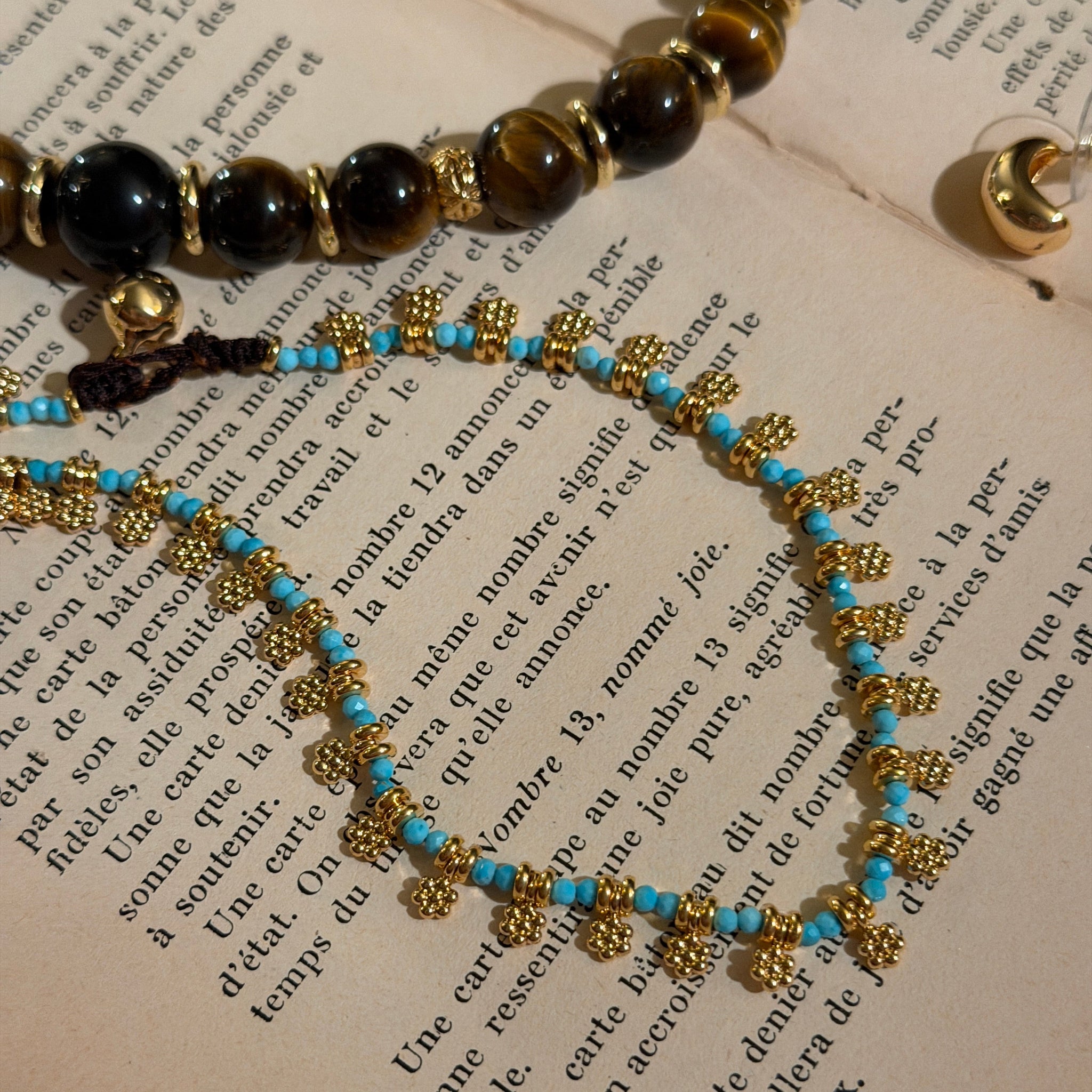 18KT Pleated Gold, Copper, Manmade Turquoise