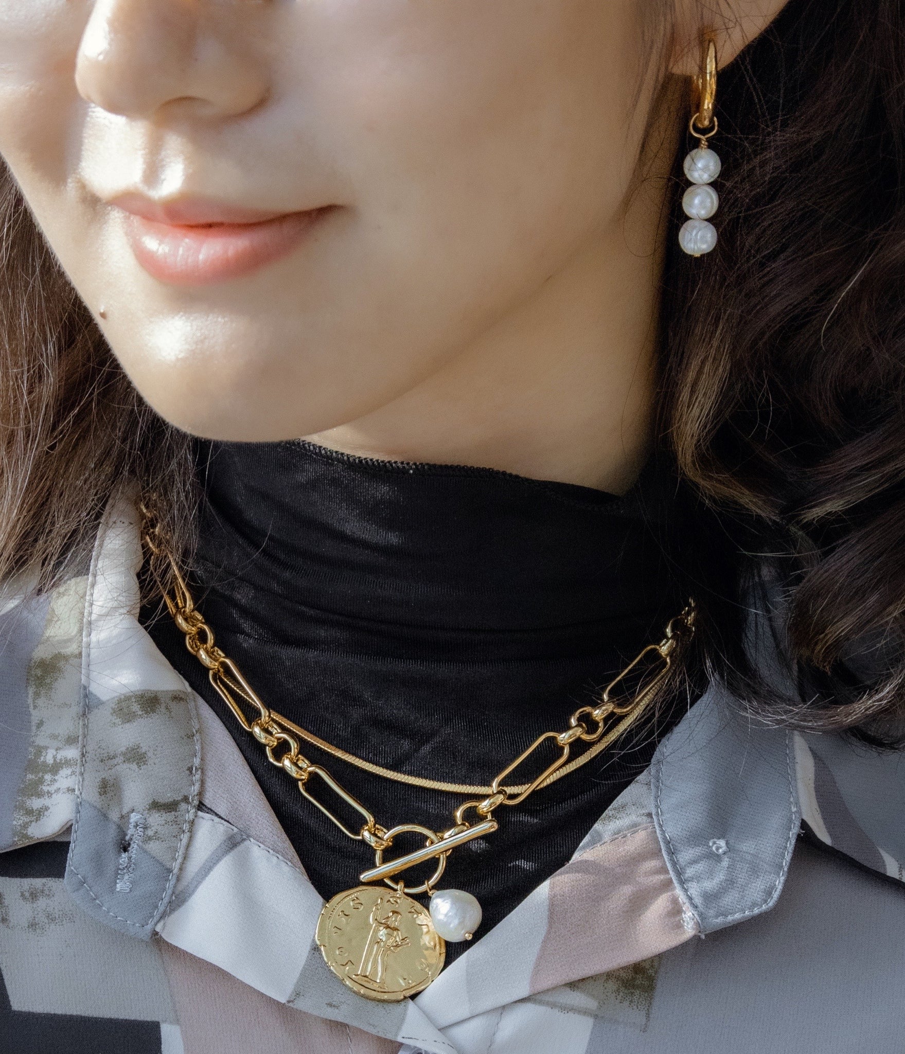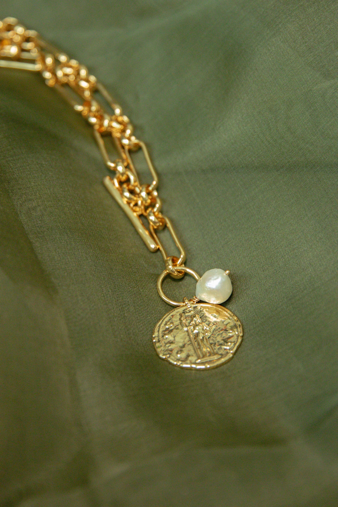 Vintage Coin & Pearl Chain Necklace