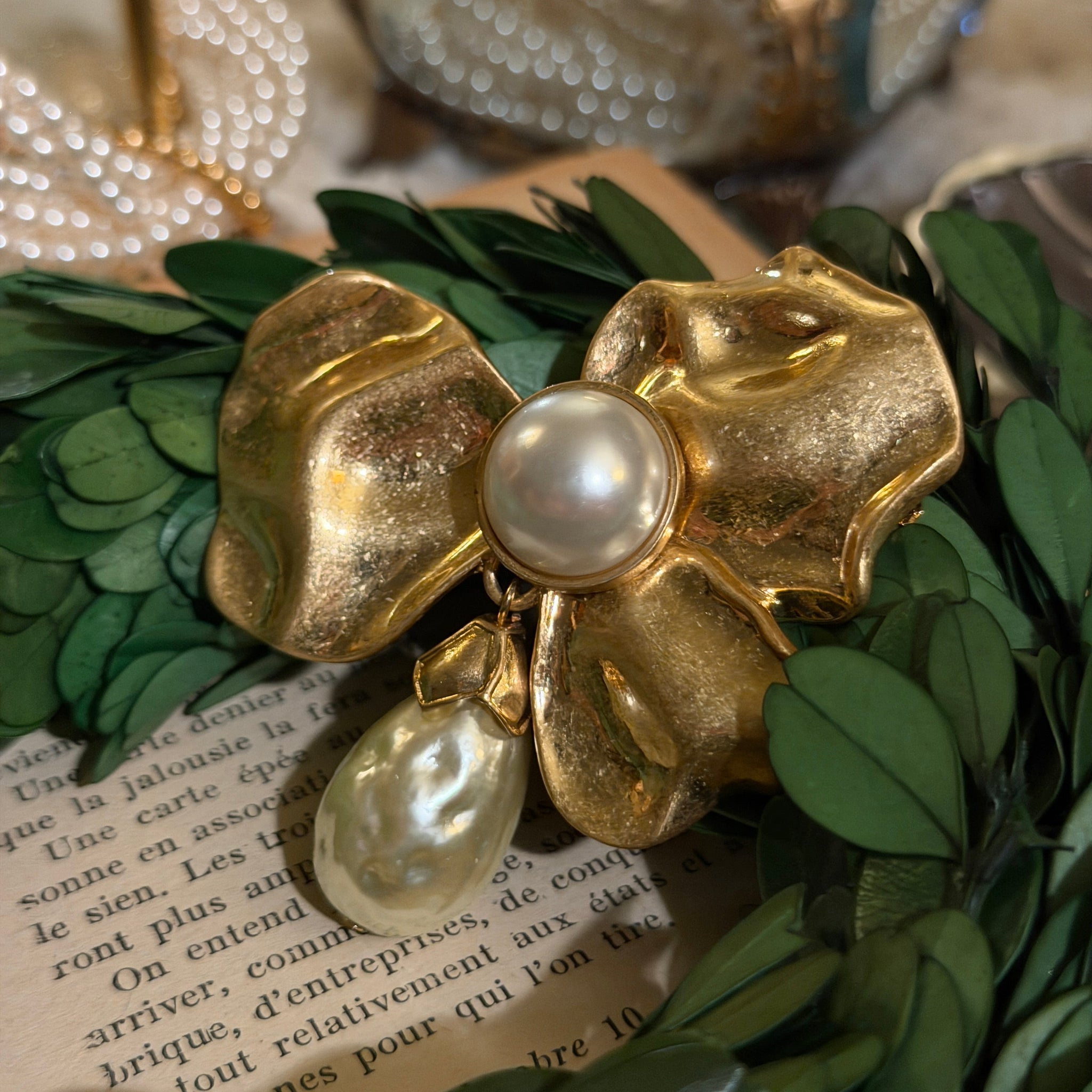 18KT Pleated Gold, Faux Baroque Pearl, Copper