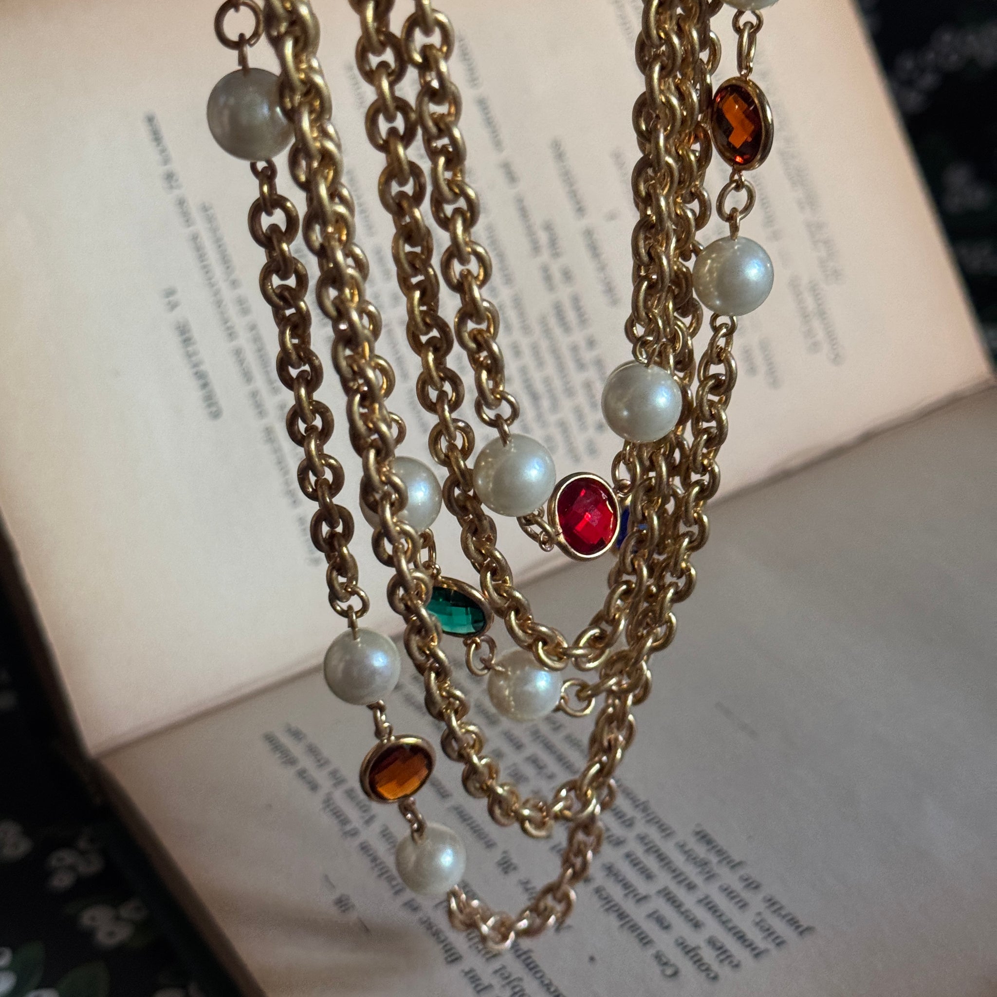 Vintage Style Multiple Gems and Pearls Long Necklace